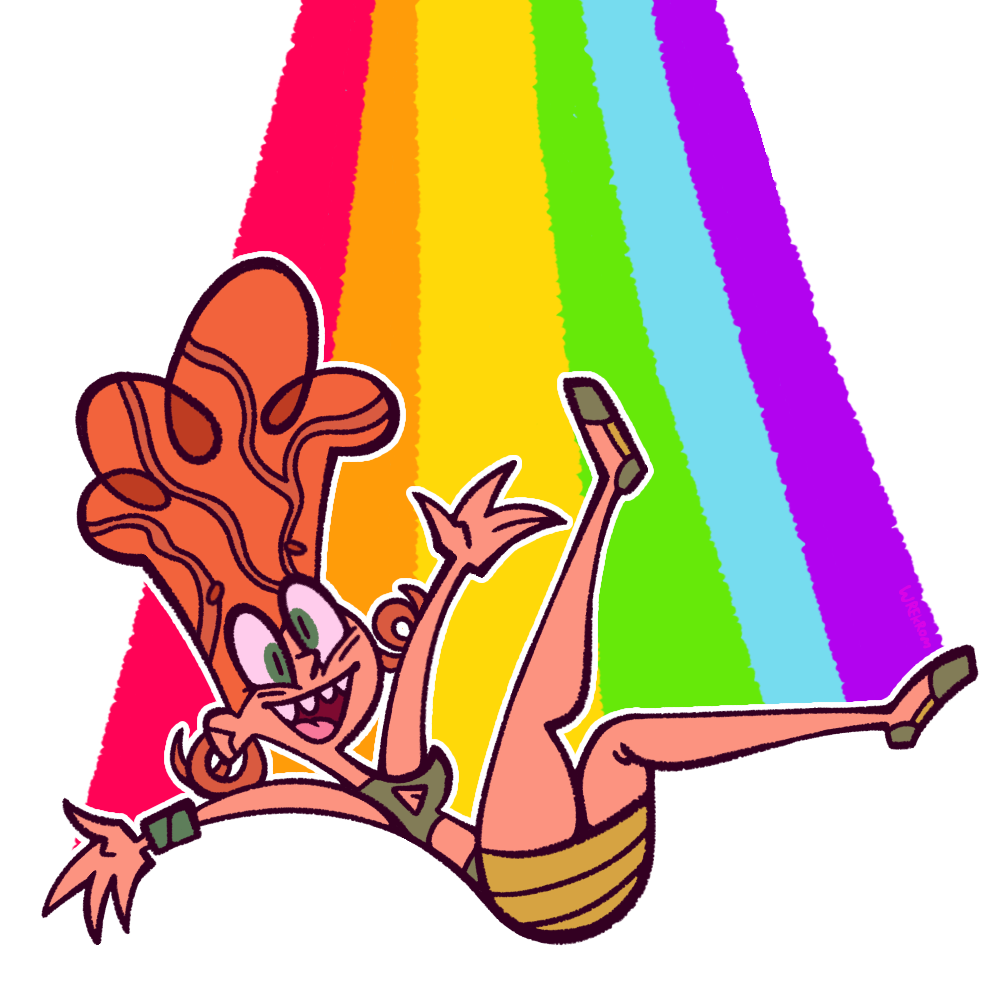 meet sandy! him and his (yet to be introduced) companion are the wario and waluigi to fergie and chortle's mario and luigi. although fergie has more in common with wario than mario. also she's not at all related to chortle, she even has a weird romantic tension with him that i can never decide to make canon or not... my argument is falling apart but you get what i mean. they're rivals.